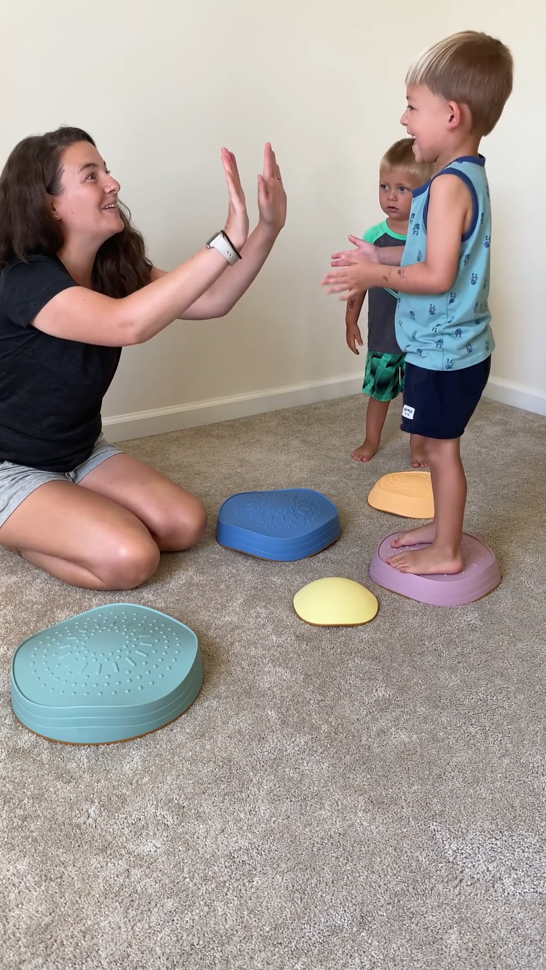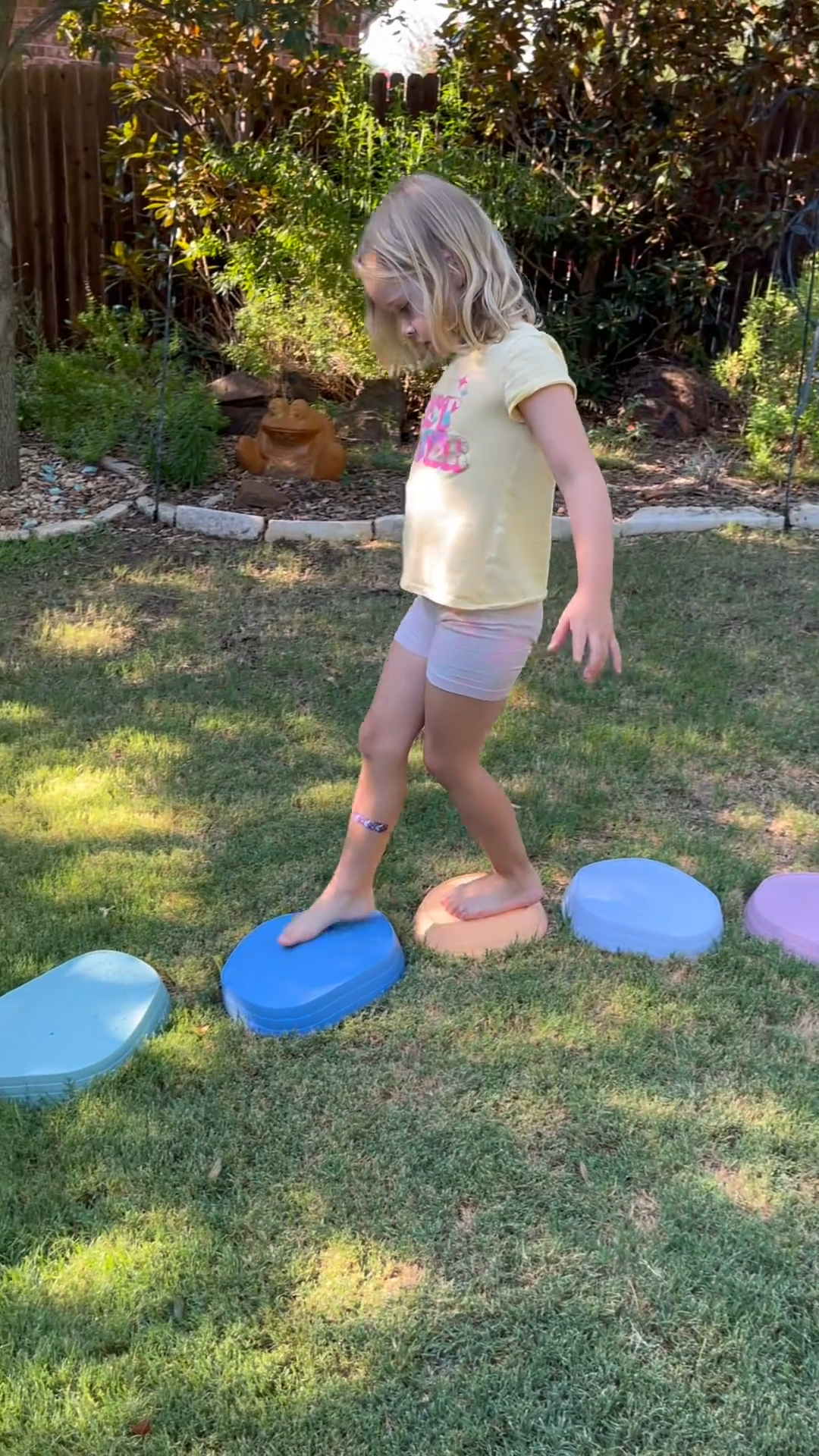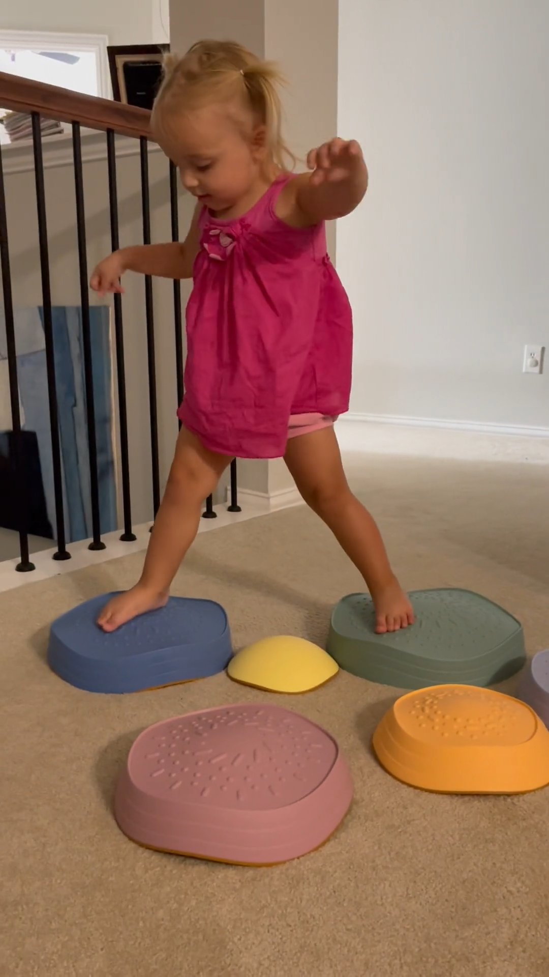 "Den taktila känslan, muskel- och ledkänslan sätts i spel när man leker med tumlestenarna. De tränar aktiveringen av de små, lednära musklerna runt fotled, knä och höft, som skapar stabilitet."